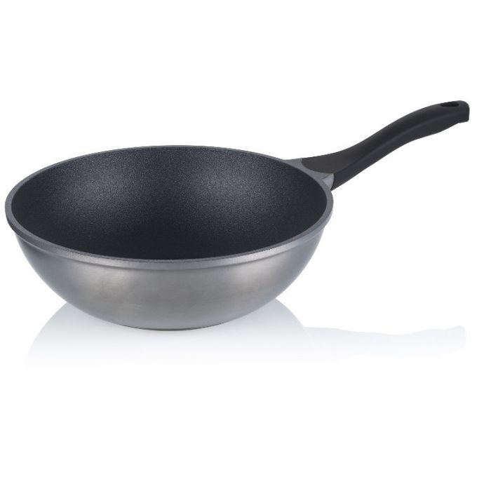 Корпус ВОК KELA Vitana Gusto из литого алюминия с инновационной структурой поверхности: небольшие углубления в корпусе сковороды (не в покрытии) обеспечивают хрустящую корочку с интенсивным вкусом. Материал полностью подходит для вторичной переработки.