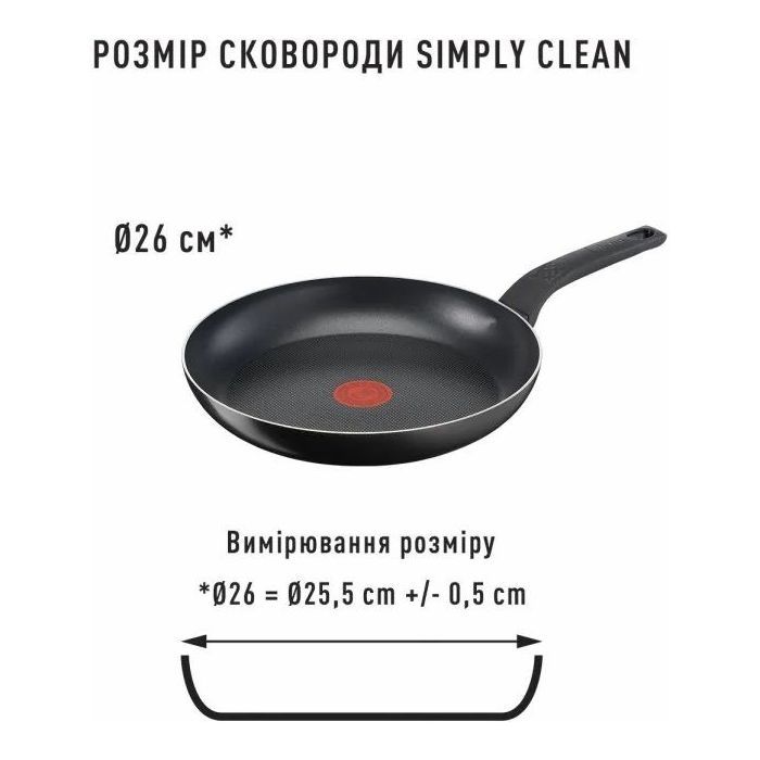 Tefal Simply Clean Thermo-Spot 26 см (B5670553) – это универсальная сковорода с антипригарным покрытием и технологией Thermo-Spot, которая сигнализирует, когда сковорода достигла оптимальной температуры для приготовления.