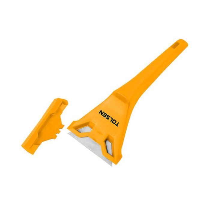 Пластиковый скребок Tolsen предназначен для эффективной очистки различных поверхностей от грязи, краски, клея и других материалов. Его компактный размер 175 х 70 мм позволяет удобно работать даже в труднодоступных местах. Лезвие изготовлено из высококачественной стали SK5, что обеспечивает прочность, остроту и долговечность. Трапециобразная форма лезвия обеспечивает точность и контроль при использовании. Эргономичный пластиковый корпус гарантирует комфортное удержание скребка при работе.