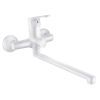 Однорычажный, настенный смеситель для ванны NM-2C234C в хромированном цвете от Aquatica, имеет поворотный излив с выносом в 35 см, оснащается фронтальным переключателем ванна/душ, нижним отводом для подключения душевого шланга под диаметр 1/2", и устанавливается на два отверстия посредством эксцентрикового соединения под диаметр 1/2".
