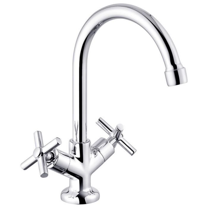 Двухвентильный, врезной смеситель для раковины (KRM) Aller-C010 от Kroner изготовлен из силумина с покрытием хромированного цвета, имеет поворотный излив с выносом в 12.5 см, и устанавливается на одно отверстие с подведением воды посредством гибких шлангов с диаметром подключения 1/2".