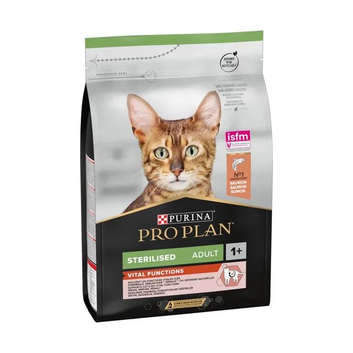 Сухой корм для кошек Purina Pro Plan Sterilised с лососем в фасовке 400 г - это отличное решение для стерилизованных кошек и кастрированных котов, который сочетает в себе высококачественные ингредиенты и научно обоснованные формулы для поддержания здоровья вашего питомца. Разработан для обеспечения оптимального уровня белка и низкого содержания жира, он помогает поддерживать идеальный вес и общее здоровье ваших домашних животных.