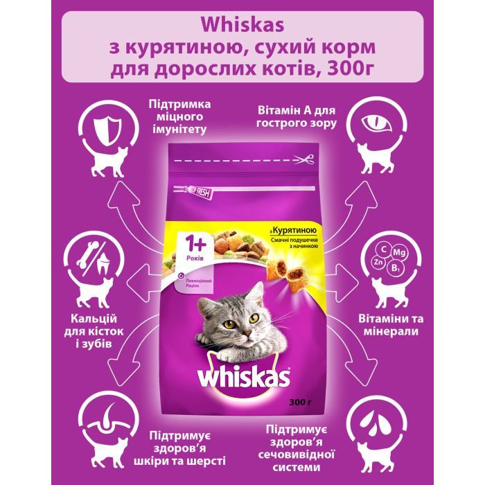Замовляю постійно. Взагалі корм Whiskas беру й інших видів для різномаїття дієти своєму улюбленцю, але Whiskas з куркою - його найулюбленіший!