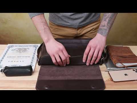 Прямоугольная мужская сумка, которая подойдёт мужчинам любого возраста. Изготовлена из износостойкой натуральной кожи коричневого цвета с шоколадным оттенком. Обладает красивой и гладкой фактурой. Внутри с лёгкостью помещаются документы, планшет, бумаги формата А4 и прочее.