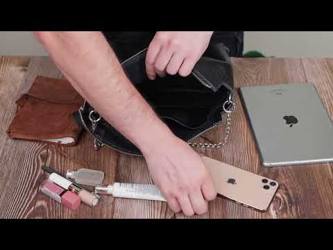 Носить сумку можно на плече с помощью регулируемого текстильного ремня или в руке — благодаря элегантной металлической цепочке.