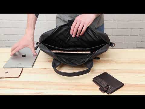 через плечо на регулируемом ремне из комбинации кожи и плотного текстиля.