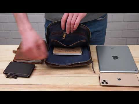 плечевая сумка, планшет, Материал корпуса - кожа, средний, дерево