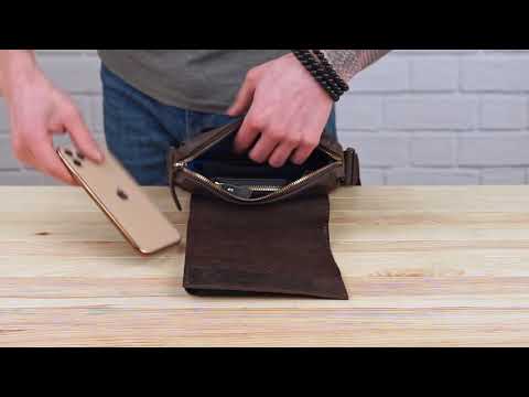 Мужская кожаная сумка небольшого размера с клапаном. Аксессуар выполнен из натуральной винтажной кожи, характерными признаками которой являются: неоднородность окраски и потертости, придающие изделию изысканный, индивидуальный вид.
