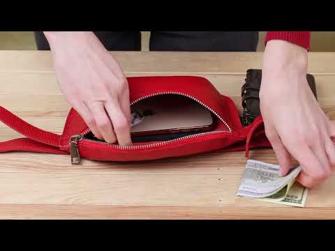 Стильная женская бананка из натуральной зернистой кожи в ярко-красном цвете. Имеет одно вместительное отделение, куда легко поместятся ключи, телефон и другие негромоздкие вещи. Ремень также выполнен из натуральной кожи и может регулироваться по длине. Фурнитура представлена в серебристом цвете.