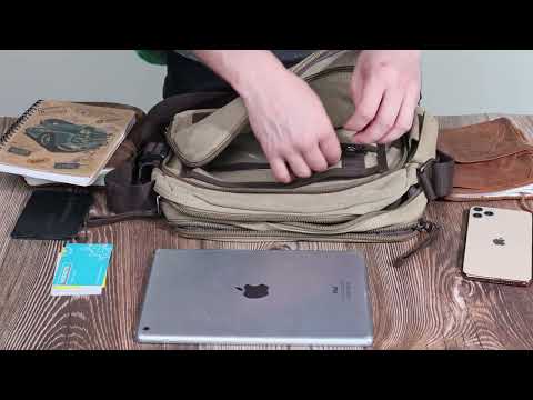 Обладает большим количеством карманов, удобной организацией, качественной фурнитурой и надёжным плечевым ремнём.