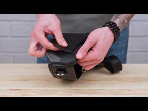 Удобная кожаная сумка чёрного цвета, которую можно носить как мужчинам, так и женщинам.