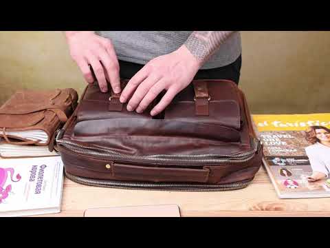 Солидная сумка-портфель для занятых и стильных мужчин, чтобы документы всегда были под рукой. Аксессуар дополнен золотистой фурнитурой и прошит коричневой нитью. Модель можно носить как за кожаную ручку, так и с помощью съемного текстильного плечевого ремешка. Внутри – прочная текстильная подкладка коричневого цвета. В уходе модель неприхотлива и долго служит. Идеальный вариант для подарка близкому человеку. Упакована в тканевый мешок.