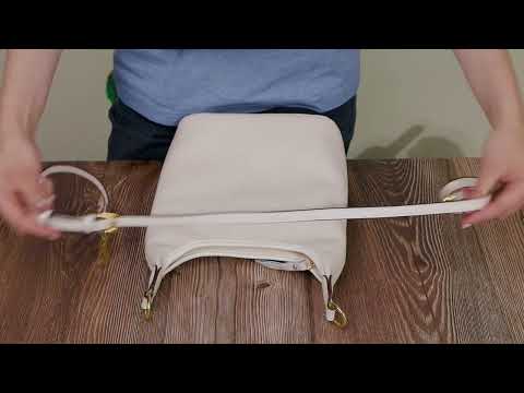 Женская сумка среднего размера из натуральной качественной кожи. Аксессуар состоит из основного отделения, которое закрывается на молнию, потайного кармана на молнии и кармана открытого типа внутри, а также кармана на молнии снаружи на тыльной стороне. Сумку можно носить в руке и на плече, для этого есть кожаный ремень, который снимается. В аксессуаре использована качественная фурнитура цвета золота.