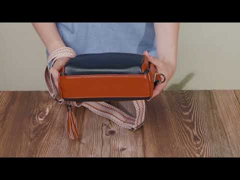 Удобная женская сумка на каждый день из натуральной кожи, с использованием черной и коричневой кожи.