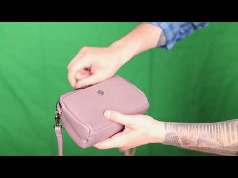 Аксессуар имеет два основных отделения на молнии, внутри которых находятся два кармана — на молнии и открытого типа, а также два внешних кармана.