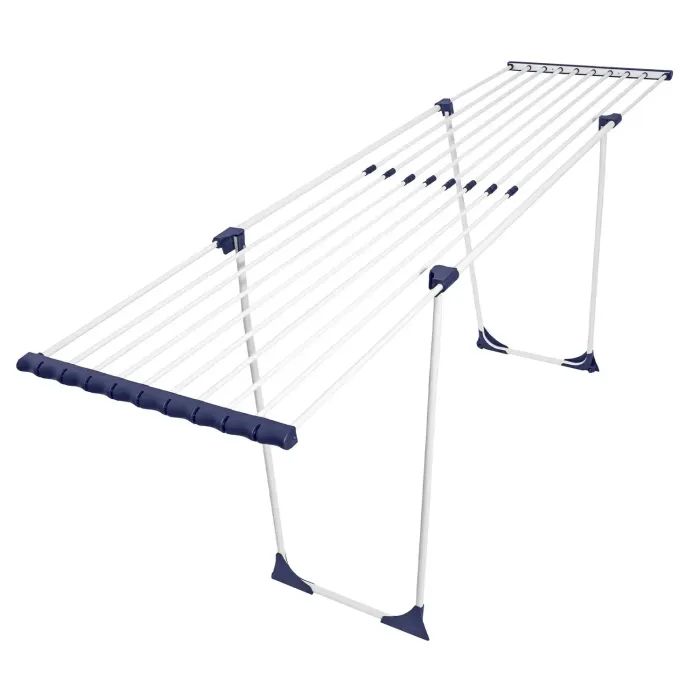 Сушилка для белья Casa Si Easy Flex имеет переменную длину рабочей поверхности от 10 до 20 метров, что очень удобно, поскольку объем выстиранных вещей каждый раз может быть разный и порой нет необходимости разлагать сушилку полностью, занимая значительное пространство. Полной рабочей длины хватает для сушки белья после двух циклов стирки стандартной пятикилограммовой стиральной машинки. Стержни имеют увеличенный диаметр, зажатые в боковые панели, благодаря чему сушилку трудно случайно повредить. Запатентованная конструкция раздвижения двух частей увеличивает удобство использования сушилки. Колесики в основе ножек облегчают передвижение загруженной сушилки и сохранят поверхность пола от повреждения. Две специальные пластиковые панели по бокам предназначены для сушения носков и других мелких вещей.