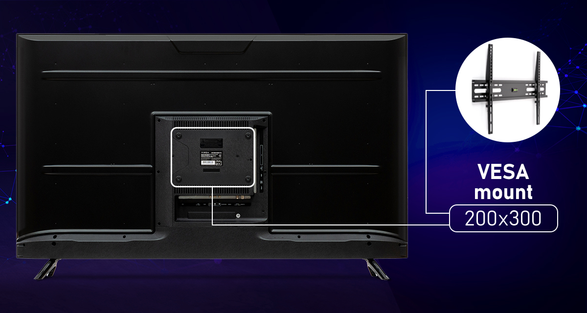 Стандартное и удобное креплениеТелевизор Vinga S55UHD25B с LED технологией имеет тонкий и прочный корпус. Его удобно поставить на тумбу, пол или повесить на стену с помощью стандартного крепления VESA.