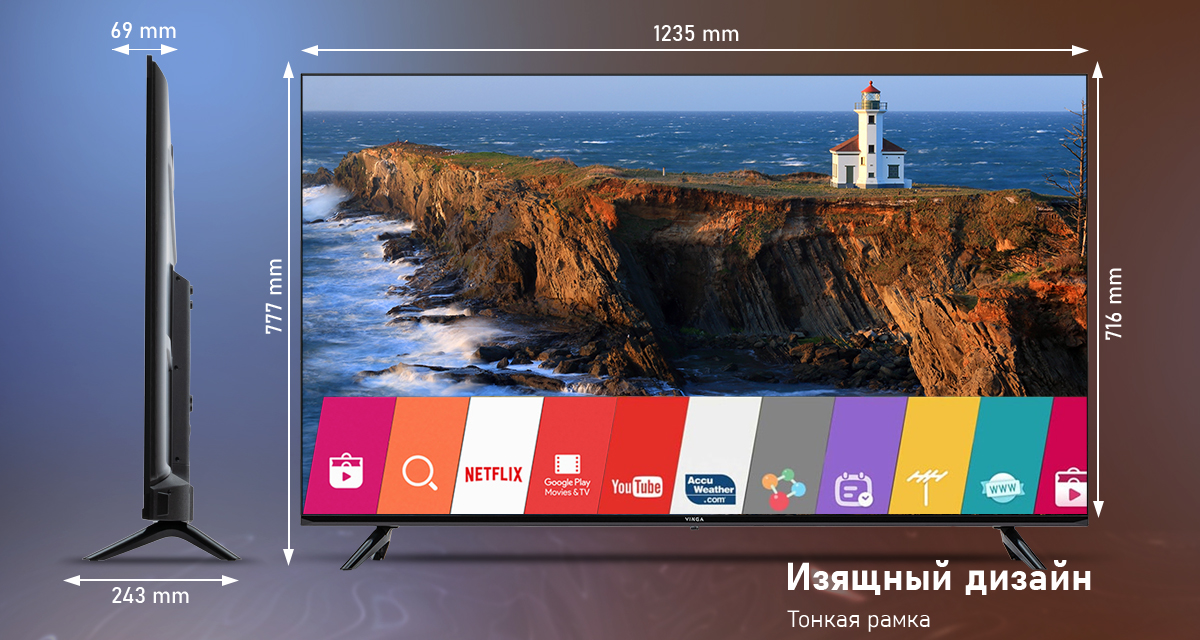 Телевизор Vinga S55UHD25B – это LED телевизор с диагональю 55 дюймов производства компании Vinga. Выбрав его, вы получите универсальный мультимедиа центр с широким функционалом, поддержкой функции Smart TV и UHD разрешением.