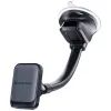 Поворотное основание держателя способно фиксировать в любом положении с углом вращения 360 градусов, зажим для фиксации смартфона регулируется на ширину устройства до 110 мм. максимально. Надежная присоска способна закрепить держатель на любой гладкой поверхности, будь то лобовое стекло или приборная панель.