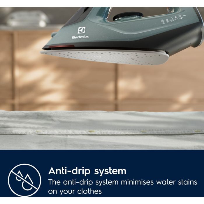 Минимизируйте риск появления следов от воды на одежде. Противокапельная двойная металлическая конструкция утюга предотвращает попадание воды в паровую камеру, когда температура слишком низкая.