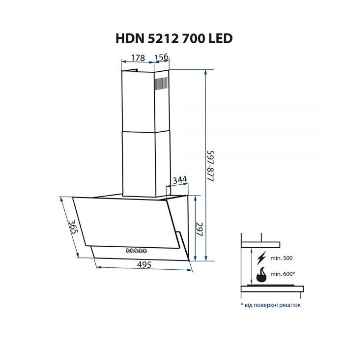 Дизайн данной кухонной вытяжки выполнен с использованием одного из самых современных и прочных материалов, а именно закаленного стекла. Именно этот материал обладает повышенной устойчивостью к воздействиям температур, что делает его идеально пасуя для использования на Вашей кухне. Кроме этого, компактный размер вытяжки Minola HDN 5212 700 LED позволяет использовать прибор в малогабаритных помещениях, создавая при этом свежий современный интерьер решения.