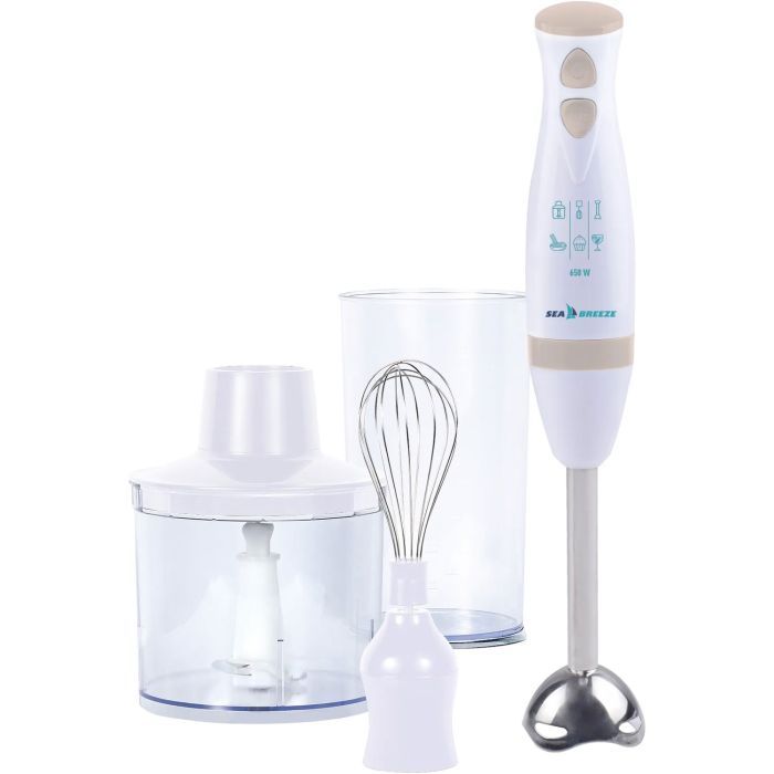 Блендер SeaBreeze SB-093 – це ідеальне поєднання потужності, функціональності та ергономіки, яке стане незамінним помічником на вашій кухні. Виконаний у білому кольорі, цей занурювальний блендер об'єднує в собі елегантний дизайн і високоякісні матеріали, що робить його не лише зручним у використанні, але й естетичним предметом інтер’єру.
