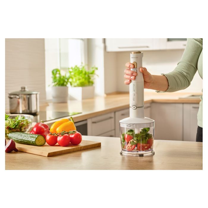 Блендер Sencor SHB6441WH — це не просто інструмент для приготування їжі, а справжній досконалий партнер на вашій кухні. Потужність 1200 Вт дає змогу легко та швидко обробляти найрізноманітніші інгредієнти, від фруктів і овочів до м'яса та льоду. Цей занурювальний блендер зробить будь-яке завдання легким завдяки своїм багатофункціональним можливостям.