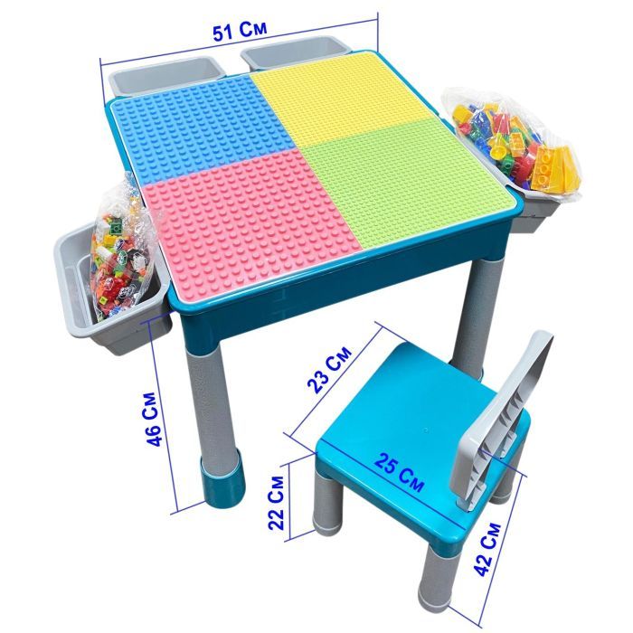 Конструктор "Ігровий центр" - це стіл, стілець і ЛЕГО-сумісні деталі.