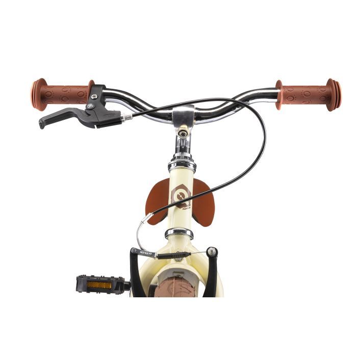 Кермо і сидіння регулюються по висоті в широкому діапазоні. Сидіння м'яке, з покриттям з ECO-шкіри. Гріпси керма м'які гумові, з бічним захистом рук при падінні. Ручне гальмо V-Brake на передньому і ножні гальма на задньому. Подібна комбінована схема, де для гальмування заднім колесом потрібно натискати на педалі в зворотному напрямку, дозволить маленькій дитині легше освоїтися. Так як самим маленьким дітям буває складно користуватися ручним гальмом.