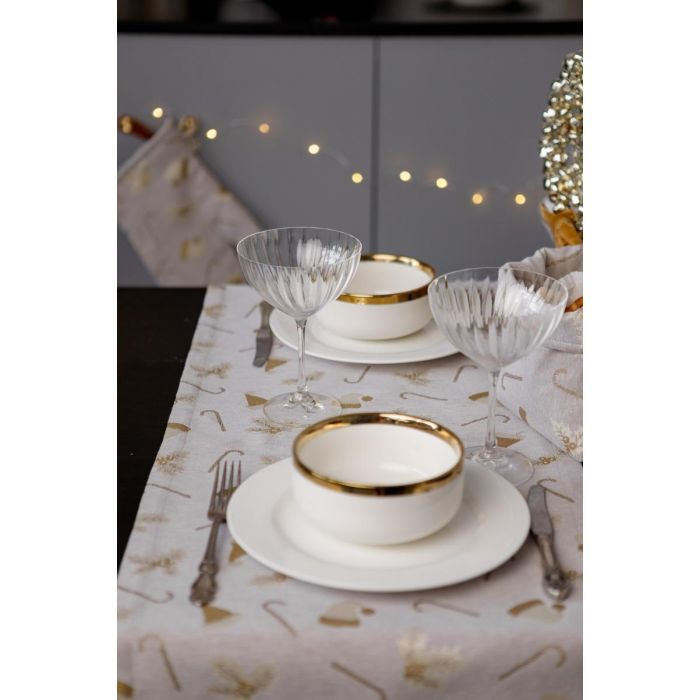 Форма - прямокутна, Розміри - 40 x 140 см, Матеріал - поліестер, бавовна, люрекс, Декорування - новорічні, Колір - бежевий, золотий, молочно-білий