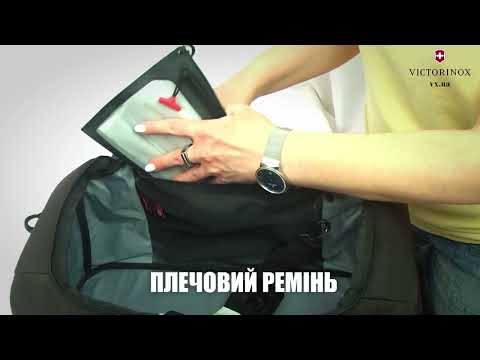 Знімний водонепроникний чохол з регульованим ремінцемЗнімний та регульований плечовий ремінь із фірмовим набивкою Victorinox.Основне відділення має сітчасту кишеню на блискавці