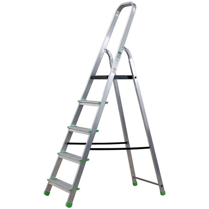 Одностороння підлогова алюмінієва переносна драбина (стрем'янка) для професійного використання, зі стабільною алюмінієвою платформою.