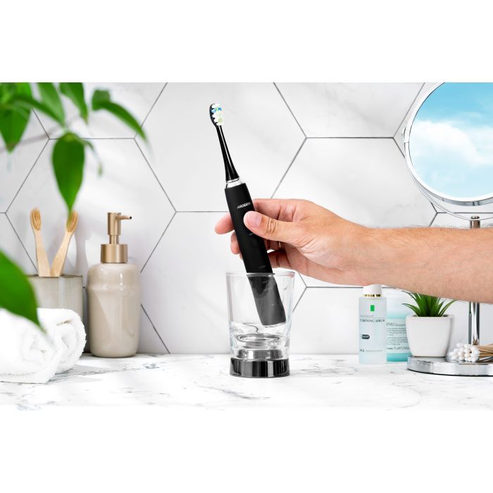 Електрична зубна щітка Ardesto ETB-212CB чорна. Середньо-м'яка щетина насадок DuPont - ефективне очищення зубів при дбайливому ставленні до ясен та ротової порожнини.