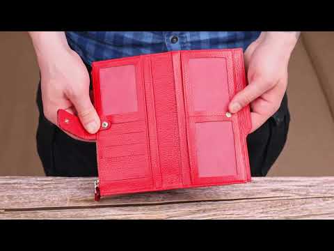 Яскравий жіночий гаманець з натуральної фактурної шкіри з тисненням під змію. Аксесуар має шість прилеглих кишень, у які помістяться купюри всіх номіналів, містку монетницю та двадцять кишень для карток. Закривається аксесуар хлястиком на кнопку.
