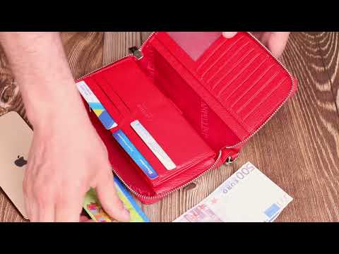 Чудовий клатч для ділової та стильної жінки з натуральної шкіри. Аксесуар має велике відділення для купюр, 15 осередків для карток (один під сіточкою), кишеню-перегородку на блискавці, три прилеглі кишені, кишеню з розширювачем на блискавці зовні та тримач для ручки. Носити цю модель зручно в руці або за допомогою знімного кистьового ременя. Закривається аксесуар на блискавку.