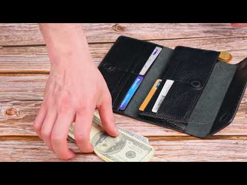 Аксесуар має три відділення для купюр, монетницю на блискавці, дві приховані кишені та дванадцять кишень для карток.
