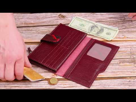 Аксесуар має шість прилеглих кишень, у які помістяться купюри всіх номіналів, містку монетницю та двадцять кишень для карток.