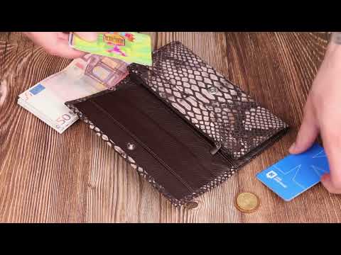 Аксесуар має два широкі основні відділення, в які поміщаються купюри всіх номіналів, кишеню-перегородку на блискавці, монетницю, десять кишень для карток, дві прилеглі кишені та одну приховану кишеню.