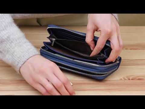 Всередині є шість великих відділень на всю довжину гаманця, відділення на блискавці для цінних і дрібних речей, кишені для карток і візиток.