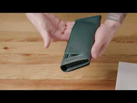 Усередині — чотири відділення для купюр, дві кишені на блискавці, вісім осередків для карток, а також два приховані відділення.