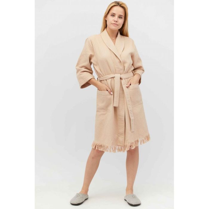 Вид - вафельний, Стать - жіночий, Розмір - M, Матеріал - бавовна, Особливості моделі - з поясом, з кишенями, Колір - бежевий