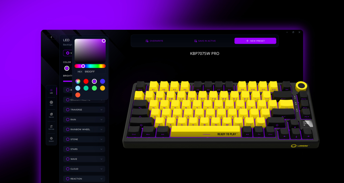 RGB підсвічування клавіш може бути налаштоване відповідно до вашого настрою чи стилю гри, надаючи клавіатурі індивідуальності. Завдяки вбудованій пам'яті, Lorgar зберігає всі налаштування підсвічування та макроси, дозволяючи миттєво занурюватися у ваш звичний ритм роботи чи гри.