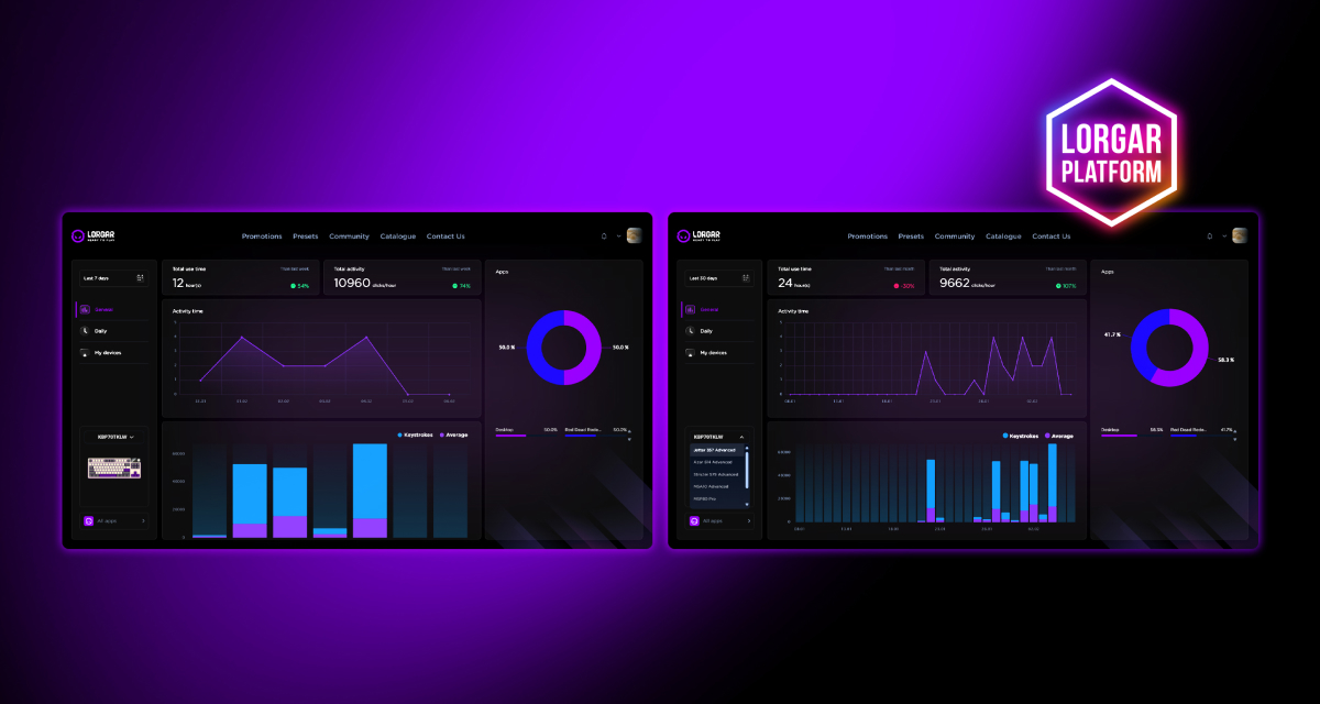 Відстежуйте свої ігрові сесії за допомогою аналітичної панелі LORGAR PLATFORM. Відстежуйте щоденну інтенсивність ігор і переглядайте детальну статистику щодо моделей використання клавіатури. Отримайте доступ до показників, щоб покращити результати та оптимізувати налаштування.
