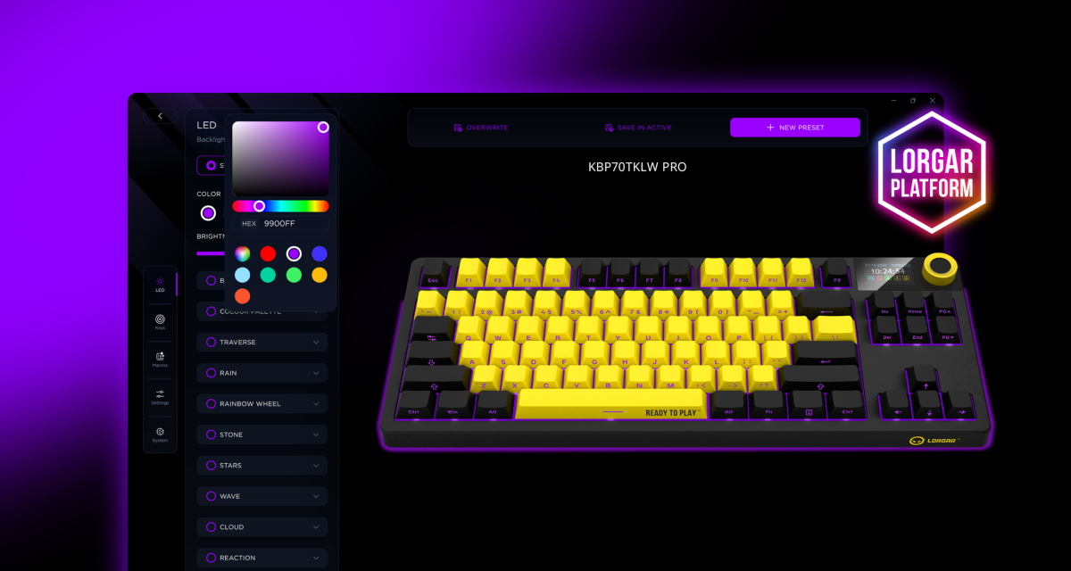 Яскраве RGB-підсвічування з 16,8 млн кольорів дозволяє налаштувати ефекти під власний стиль. Підтримується синхронізація з іншими пристроями LORGAR™ через LORGAR PLATFORM.