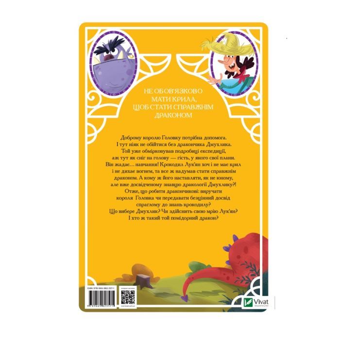 Доброму королю Головку потрібна допомога. І тут ніяк не обійтися без дракончика Дмухлика. Той уже обмірковував подробиці експедиції, аж тут як сніг на голову — гість, у якого свої плани. Він жадає… навчання! Крокодил Лук’ян хоч і не має крил і не дихає вогнем, та все ж надумав стати справжнім драконом. А кому ж його наставляти, як не юному, але вже досвідченому знавцю дракології Дмухлику?!