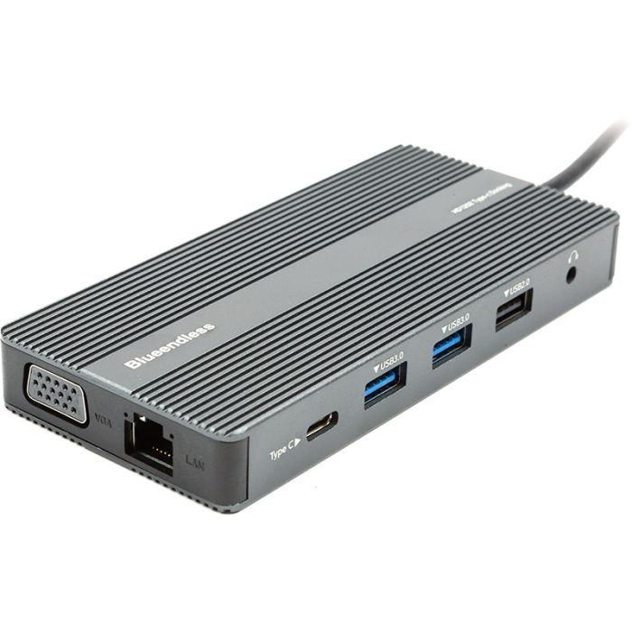 Тип - зовнішній, Інтерфейс підключення - USB Type-C, Вихідні роз'єми - 2 x USB 2.0, 1 х RJ45, 1 x HDMI, VGA, 1 x USB Type C, microSD