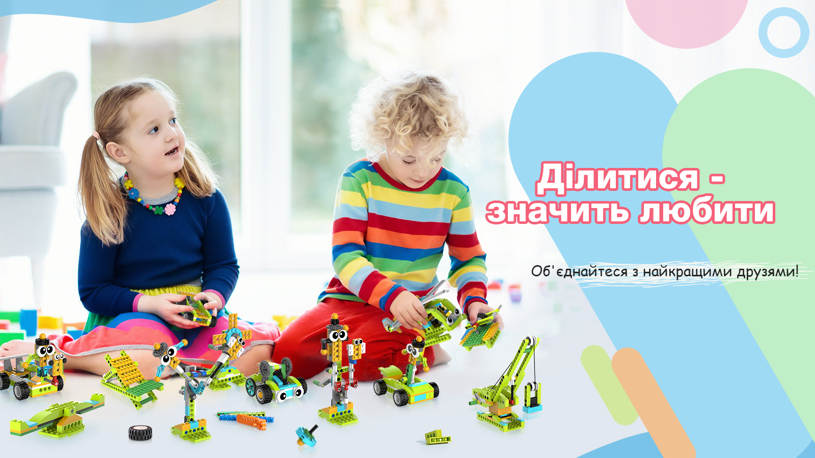 370+ цеглинок дають змогу дітям ділитися ідеями щодо будівництва моделей і вчитися працювати в команді з іншими. Старші діти можуть допомагати молодшим, щоб грати і веселитися разом.