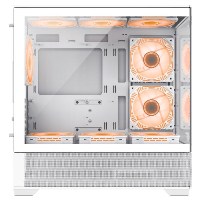 Ключовою особливістю Gamemax Vista MW є його зосередженість на охолодженні. Корпус пропонує 9 місць для встановлення вентиляторів: 3 знизу, 3 зверху або 2 по 14 см, 2 збоку та 1 ззаду. Така конструкція дозволяє ефективно регулювати потік повітря і підтримувати оптимальну температуру системи. Вбудований пиловий фільтр запобігає попаданню пилу всередину корпусу, тим самим продовжуючи життя комплектуючих.