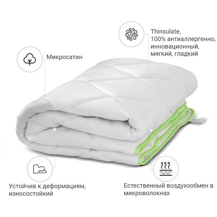 Наповнювач дає змогу тілу «дихати», на відміну від багатьох дешевших антиалергенних аналогів, не створює «парникового» ефекту, через найтонші волокна наповнювача безперешкодно проходить повітря, у такий спосіб підтримуючи оптимальну температуру в ліжку.
