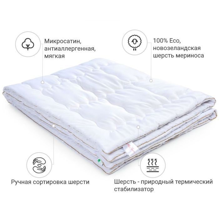 Тип - літні, Розмір - 110 x 140 см, Наповнювач - овеча вовна, мікросатин